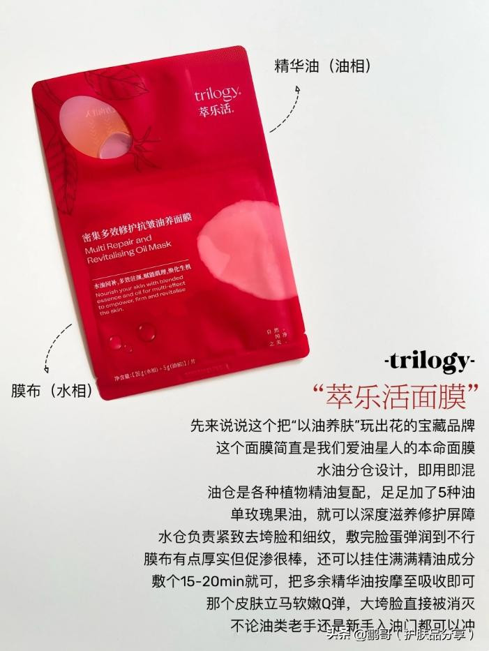 先来说说这个把“以油养肤”玩出花的宝藏品牌,这个面膜简直是我们爱油星人的本命面膜,水油分仓设计,即用即混。油仓是各种植物精油复配,足足加了5种油。