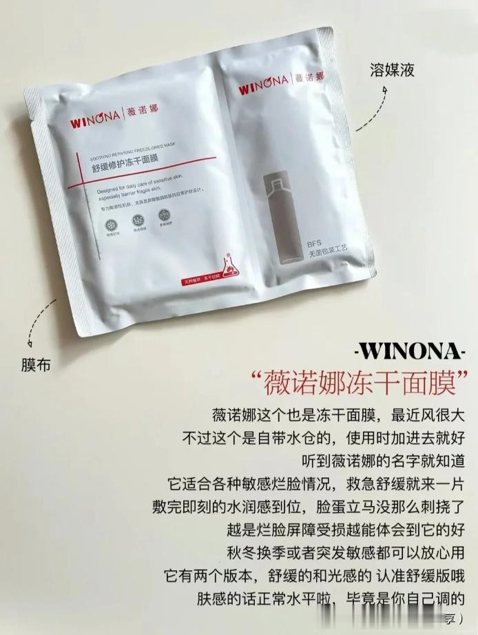 薇诺娜的舒缓修护冻干面膜,真的是敏感肌的救星!这款面膜不仅能补水保湿,还能有效改善皮肤泛红,修复受损的肌肤屏障。夏天用也不会觉得粘腻,反而非常清爽。
